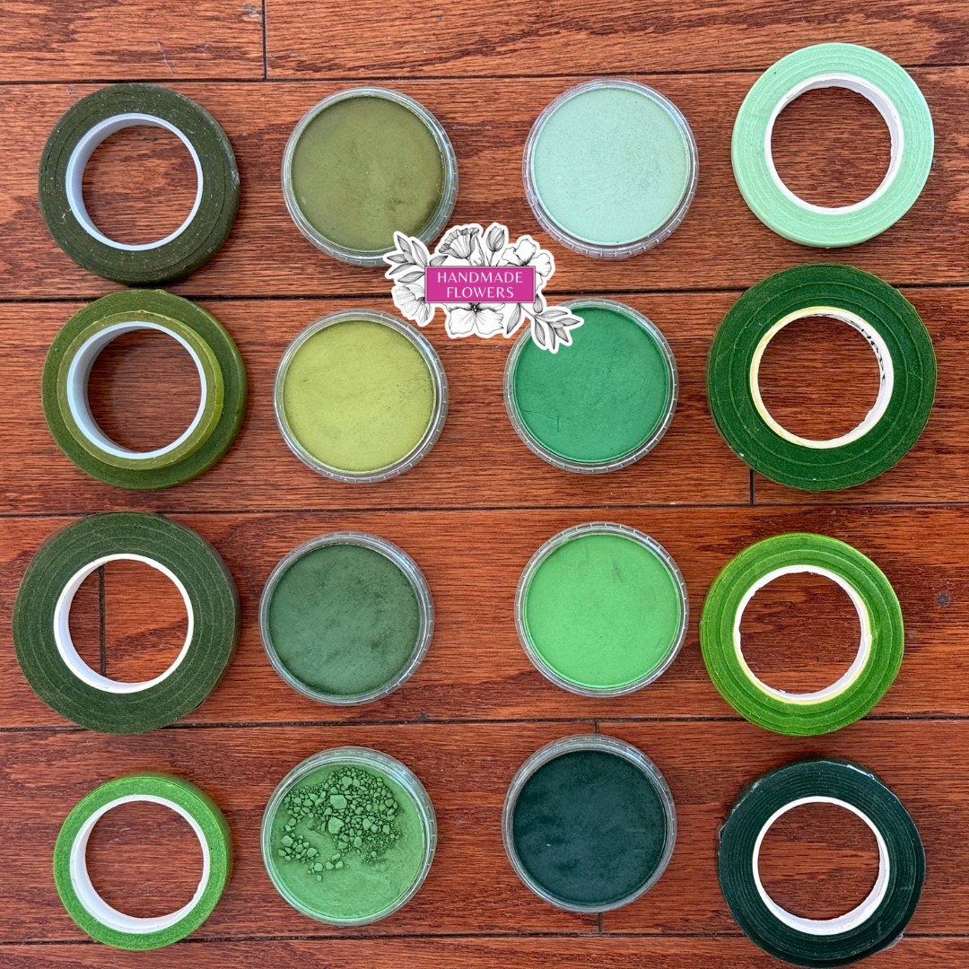 I buy supplies from all over the world when I can which means I have a lot more shades of tapes than the overage Amazon shopper. That's why my color names aren't important. Your collection of floral tapes and PanPastels will differ from mine. Just do your best to match what you have available. If it helps, jot down the name of your matching color on the inside of the tape roll - maybe even the source of that tape. With a bit of pre-planning, you could mix the clay to match the tape you plan to use. Problem solved.